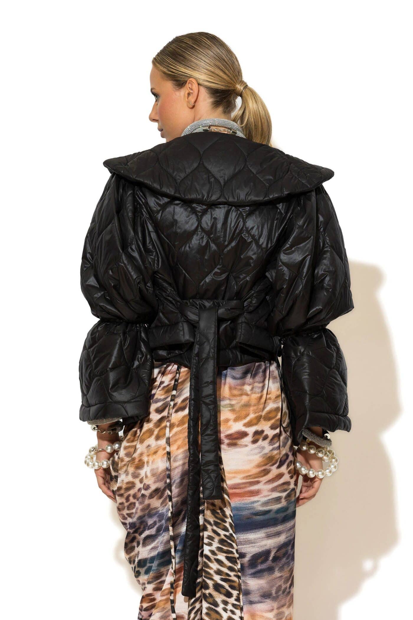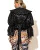 Black Cropped Puffer Jacket with Drawstring Sleeves