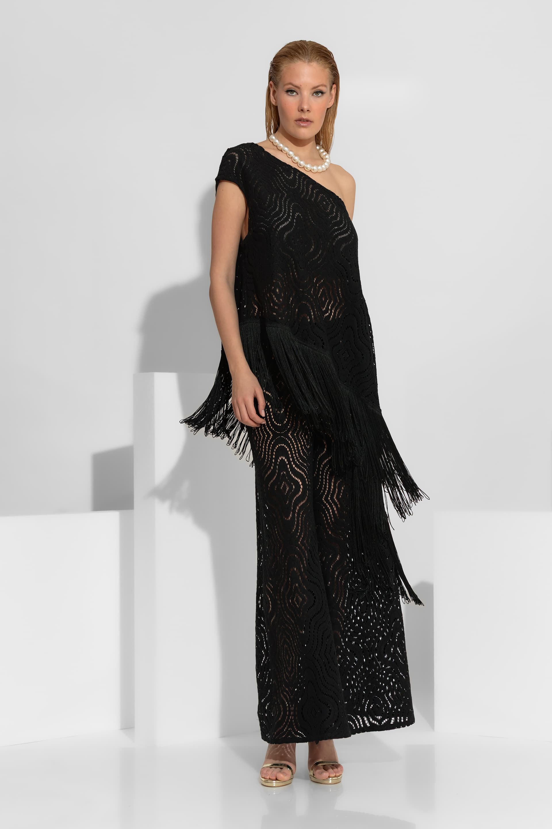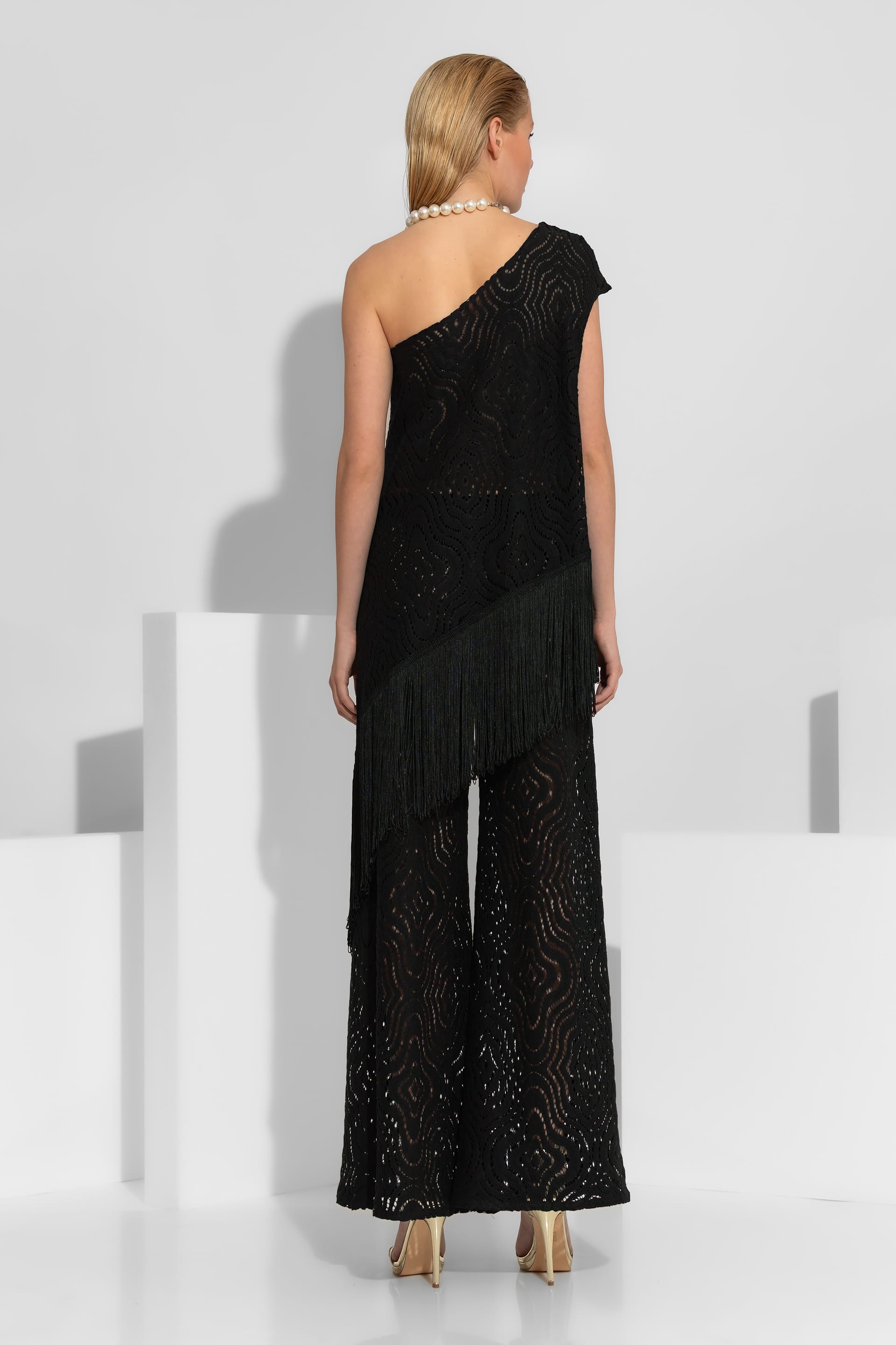 Μπλούζα ένας ώμος δαντέλα με κρόσσια