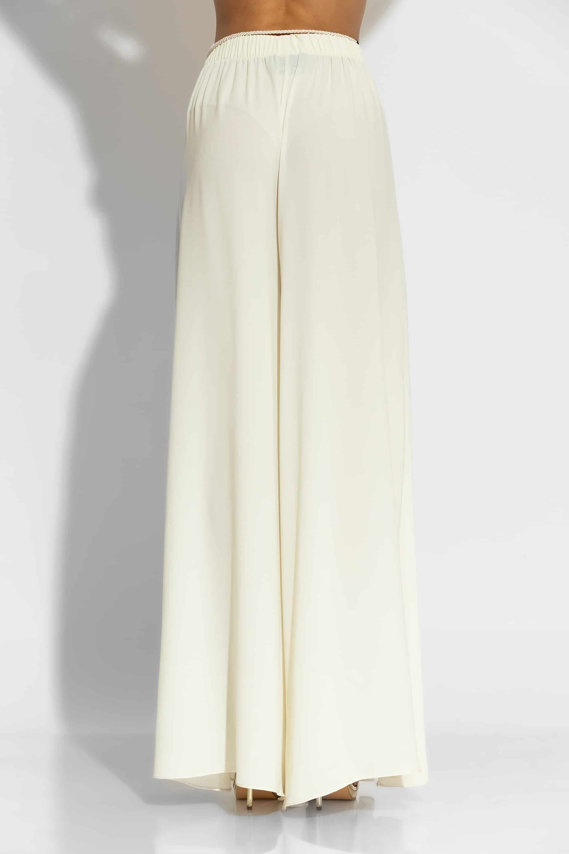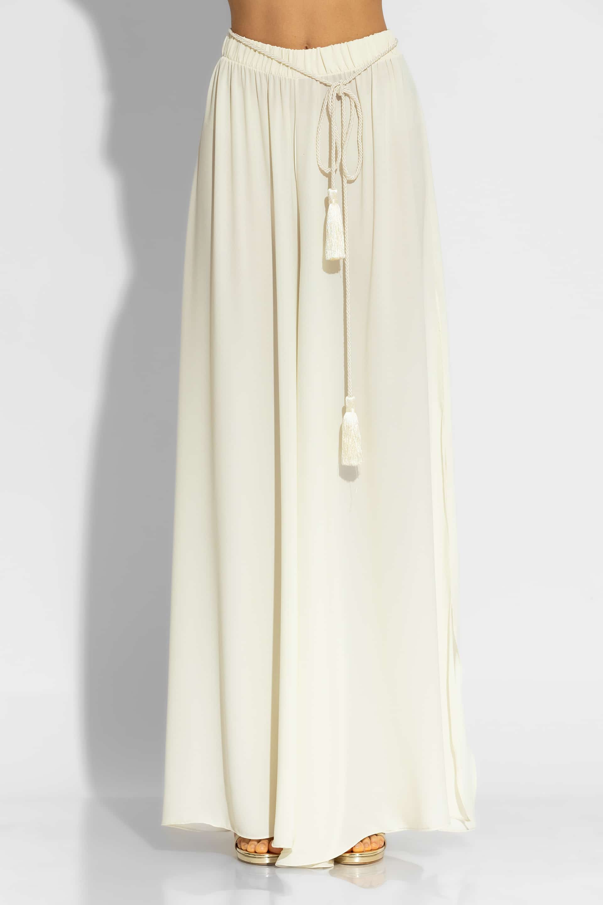 Experience the absolute luxury with these exquisite pants, crafted from premium crepe georgette fabric. Designed with a comfortable elasticated waistband and a sweeping wide-leg silhouette, they offer effortless elegance and movement. Pair yours with the matching tunic for a sophisticated elegant cocktail look or for your vacation outings.