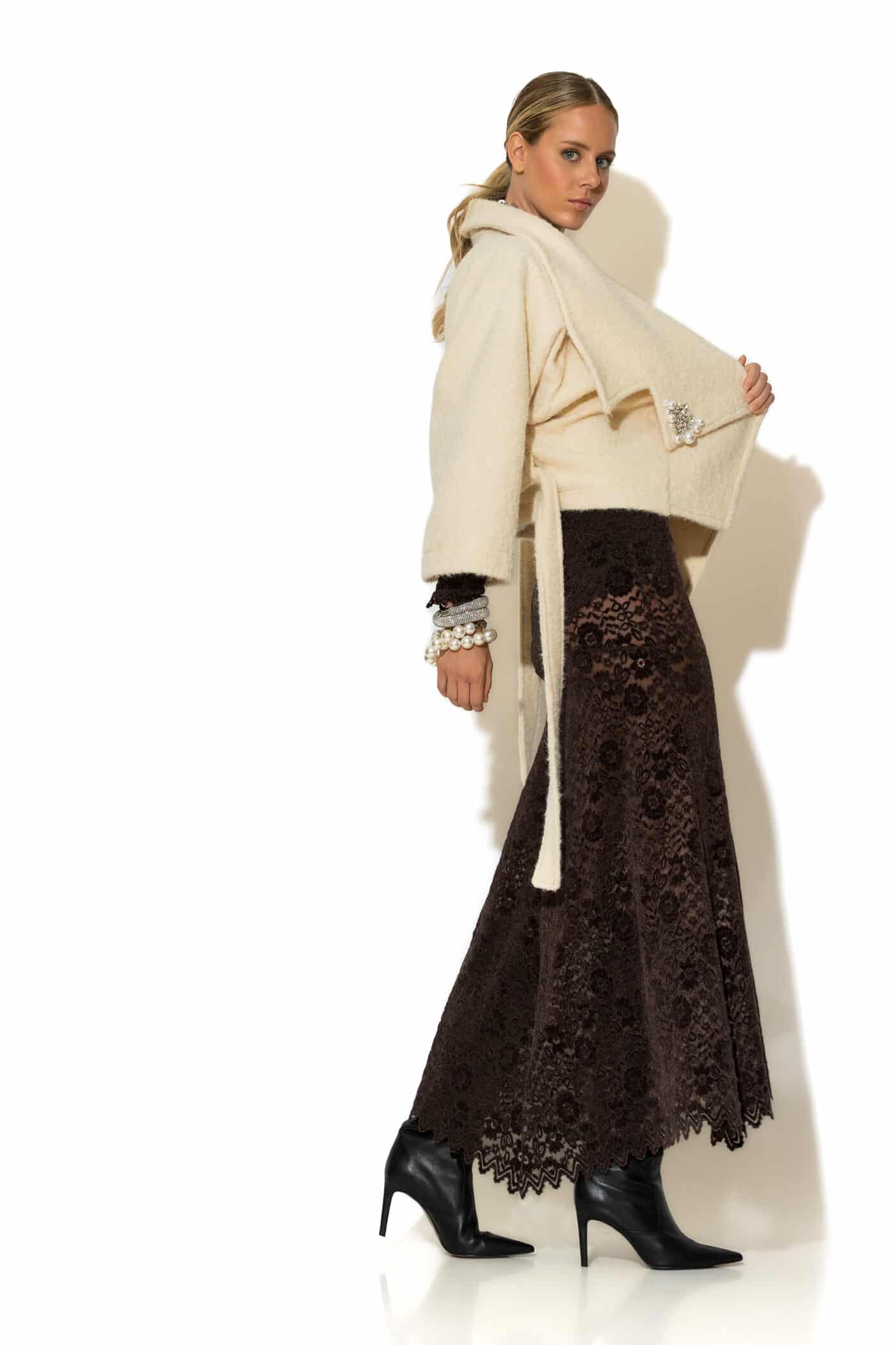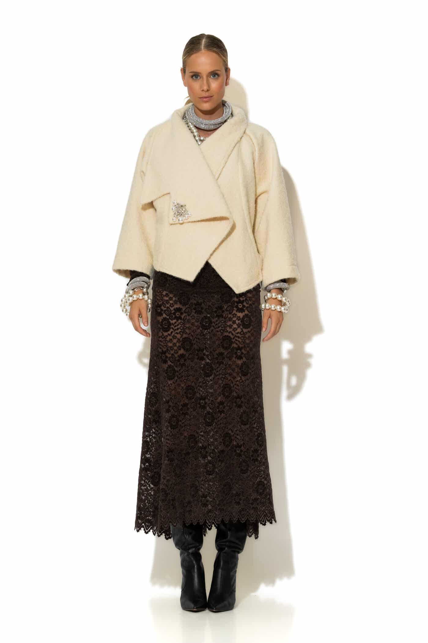 This C-THROU Jacket crafted from boucle fabric features a loose oversized fit and
