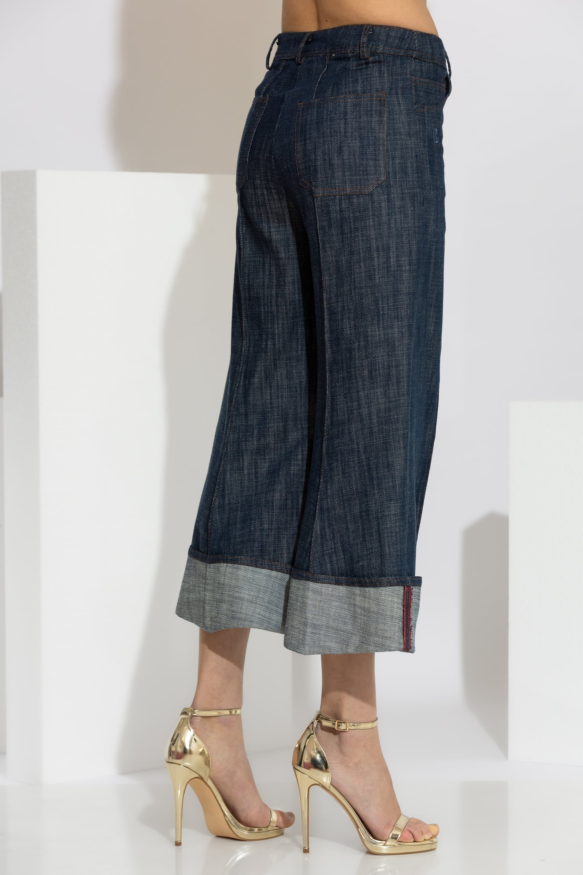 Cuffed Cropped Wide-Leg Denim Jeans