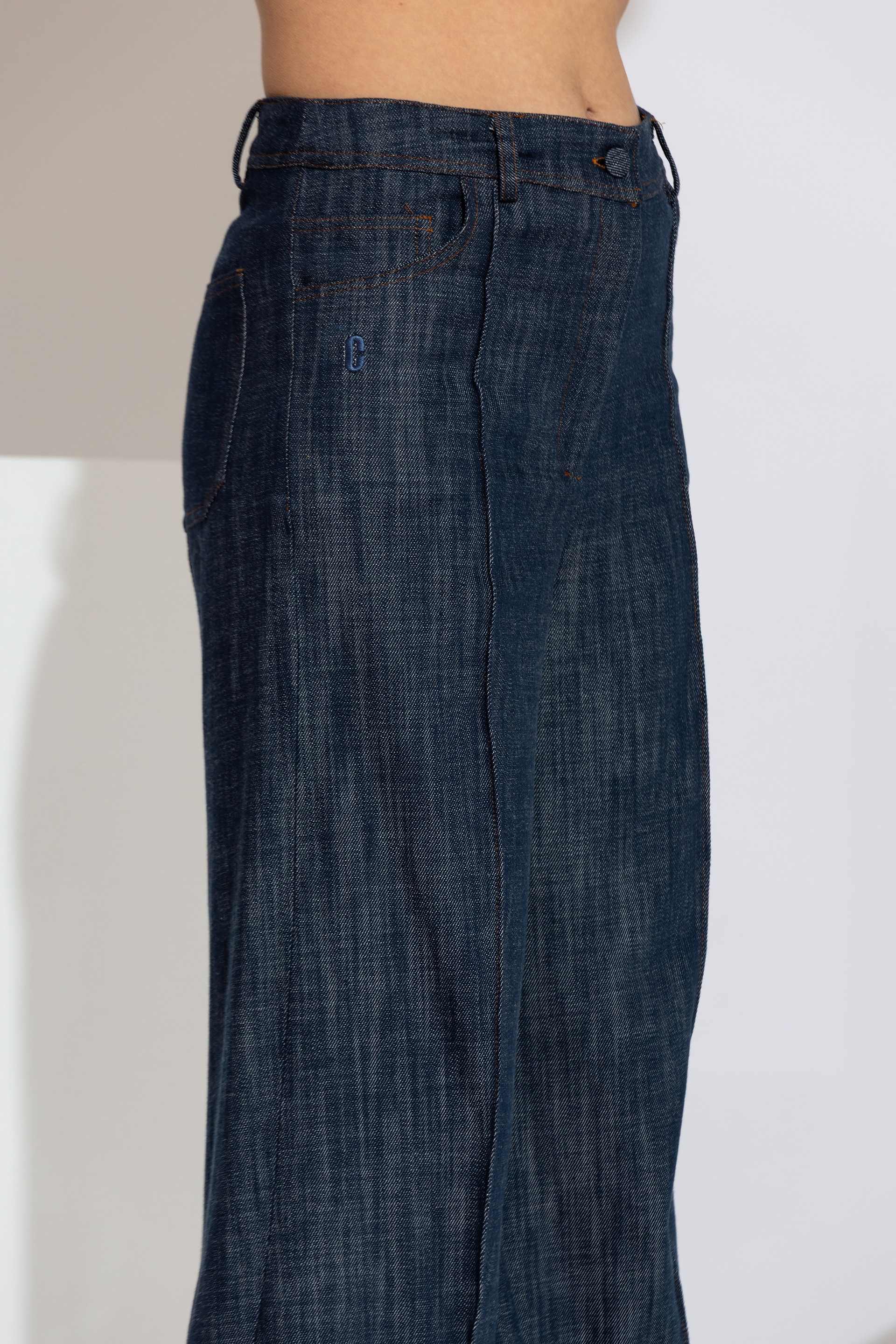 This impressively designed pair of jeans, featuring a zip and button closure, is a true statement piece for the modern wardrobe. Its slightly low-waisted fit creates an elegant, elongated silhouette that seamlessly combines comfort with a contemporary aesthetic.