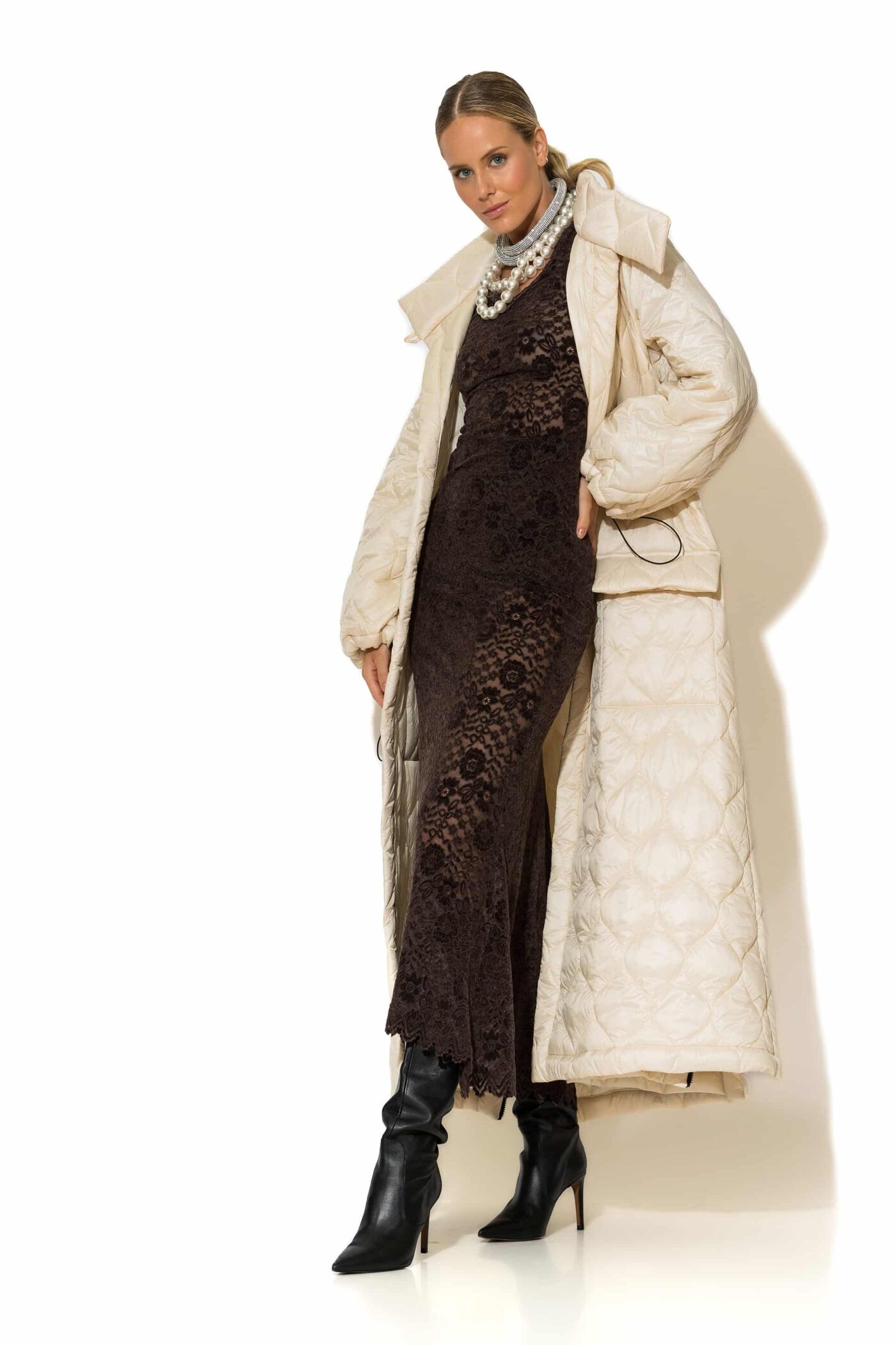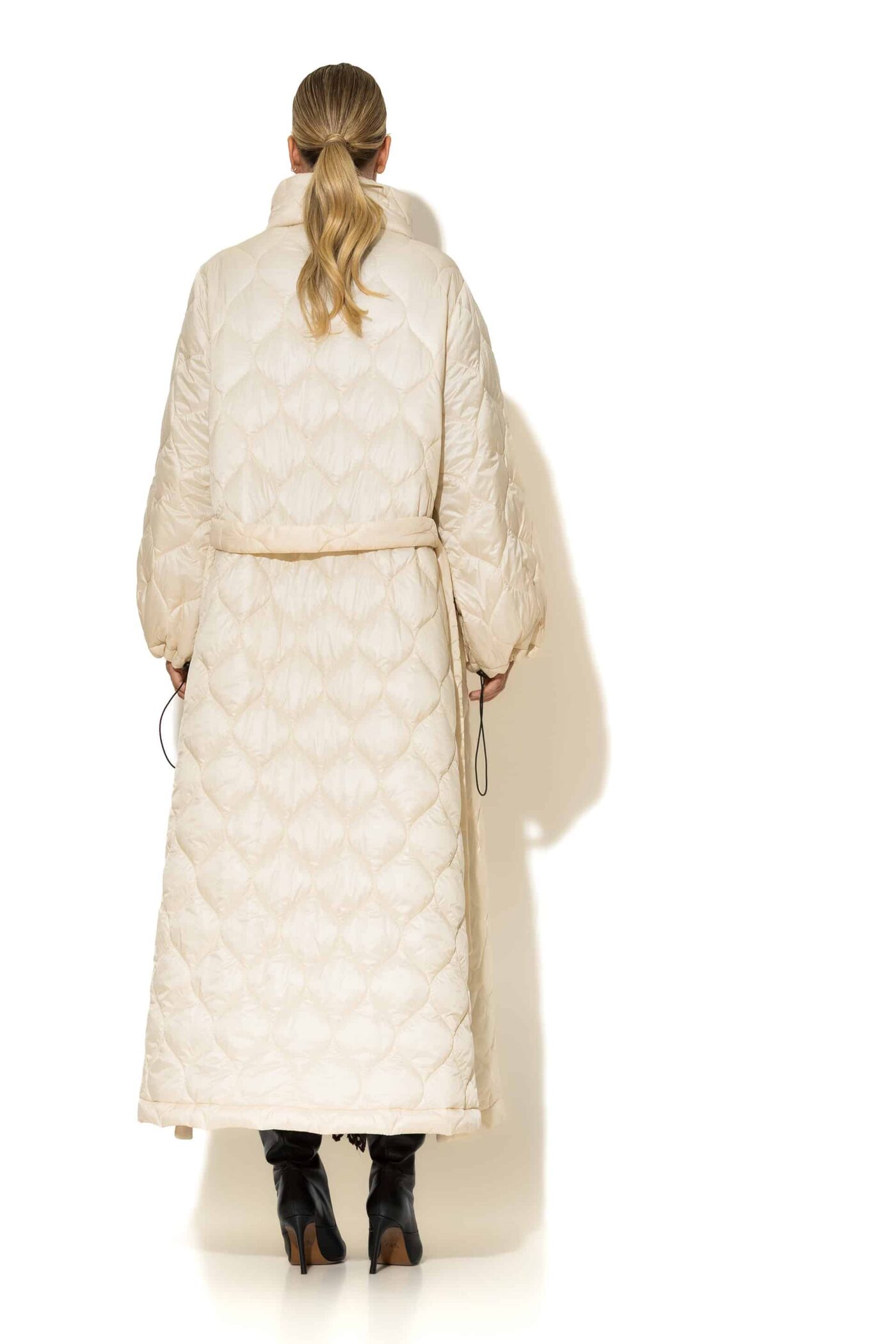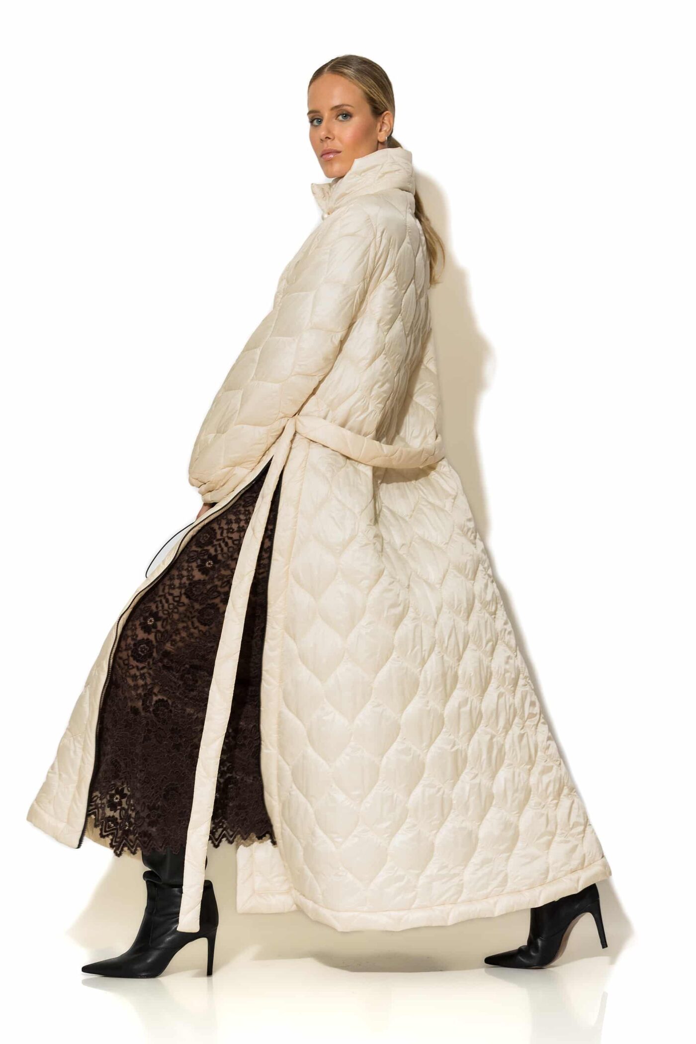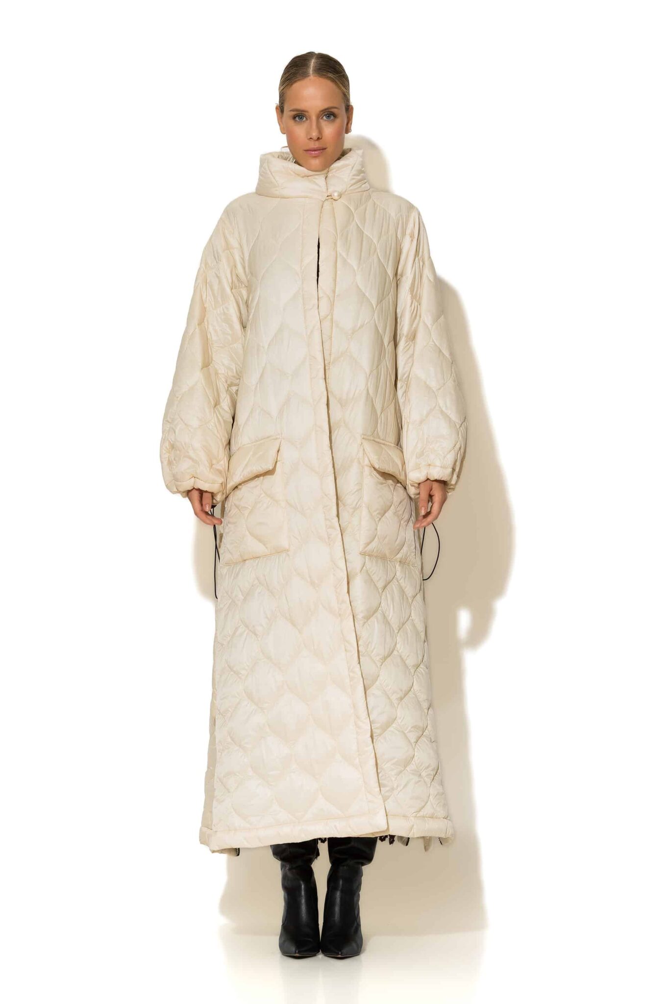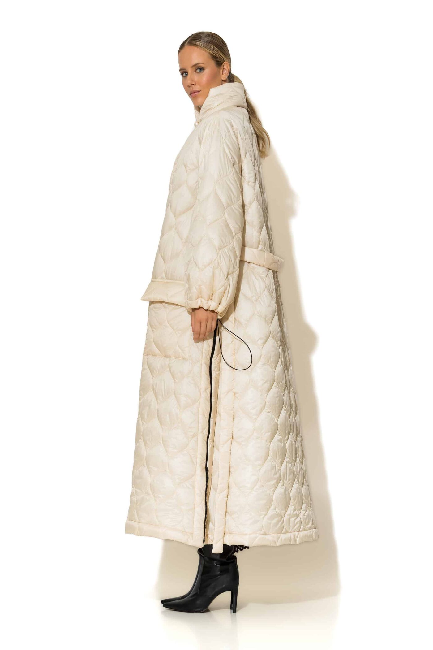 Ecru maxi puffer coat side zippers