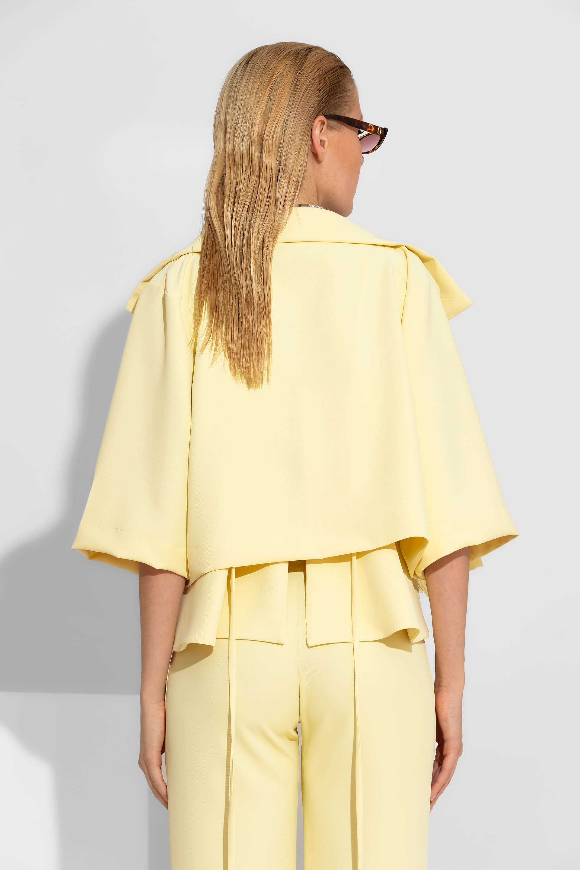 Κατασκευασμένο από υψηλής ποιότητας κρεπ ύφασμα, αυτό το oversized jacket διαθέτει μια επιβλητική, δομημένη boxy (τετράγωνη) σιλουέτα. Σχεδιασμένο με καθαρές γραμμές χωρίς κλείσιμο και άνετα μανίκια 3/4, προσφέρει ένα μοντέρνο αρχιτεκτονικό στυλ με υπέροχη κίνηση. Ο μίνιμαλ σχεδιασμός του το καθιστά το απόλυτο σύγχρονο κομμάτι για layering.