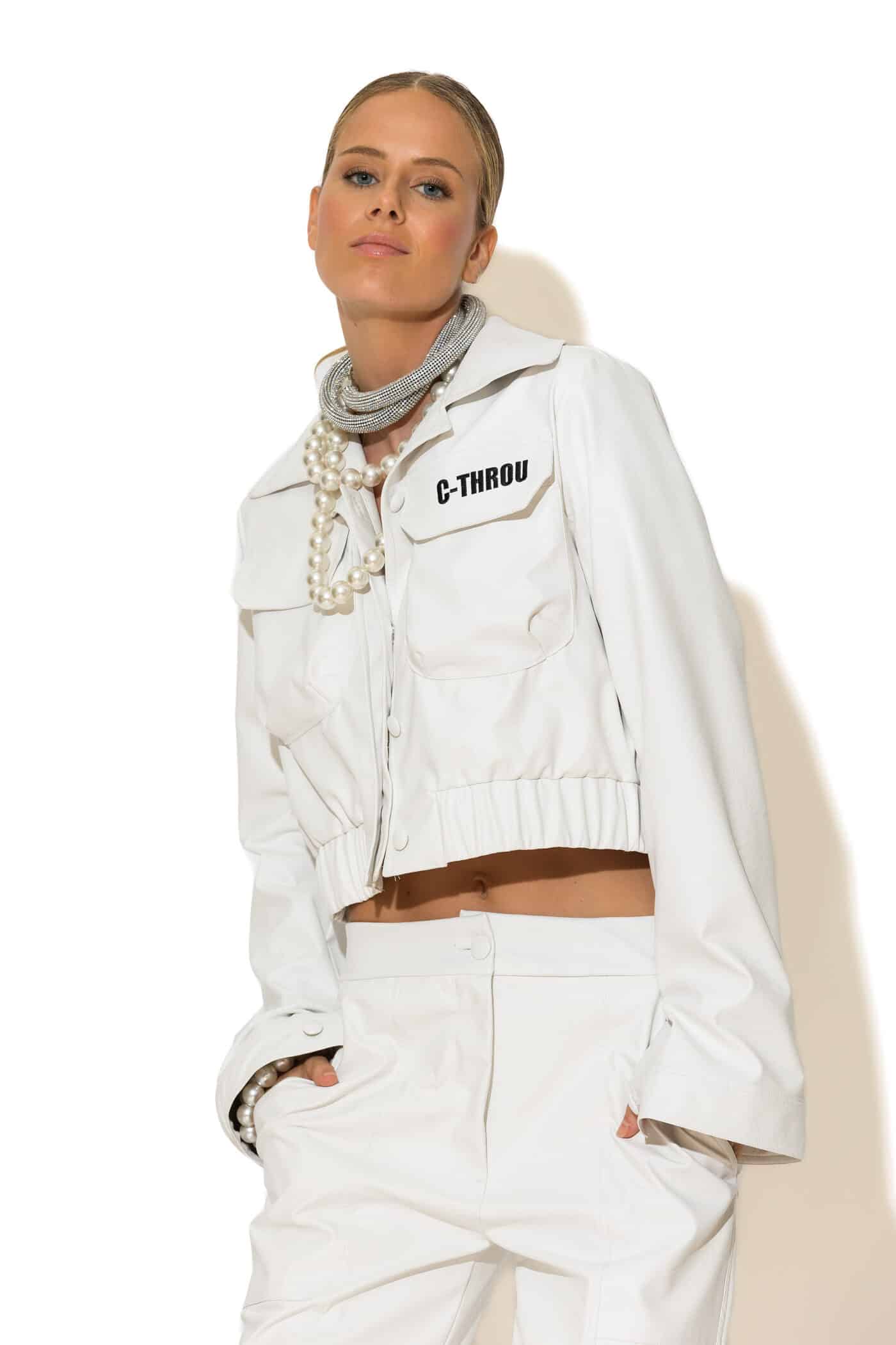 This C-THROU Logo Embroidered Faux Leather Crop Jacket is the update you need this season to your outerwear collection.