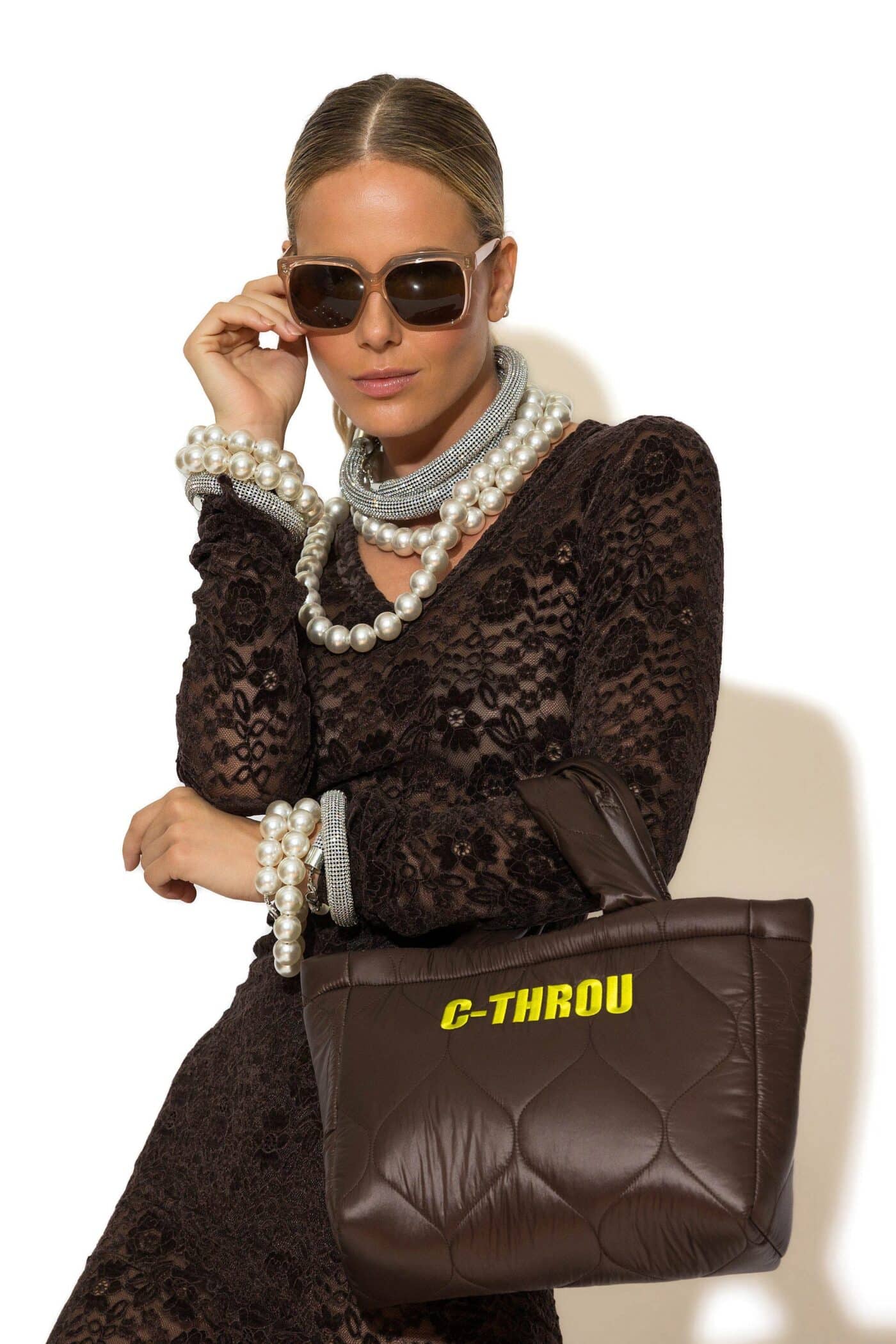 This C-THROU Puffer Tote Bag is artfully embroidered with the brand’s name and is perfect from day to night outfits