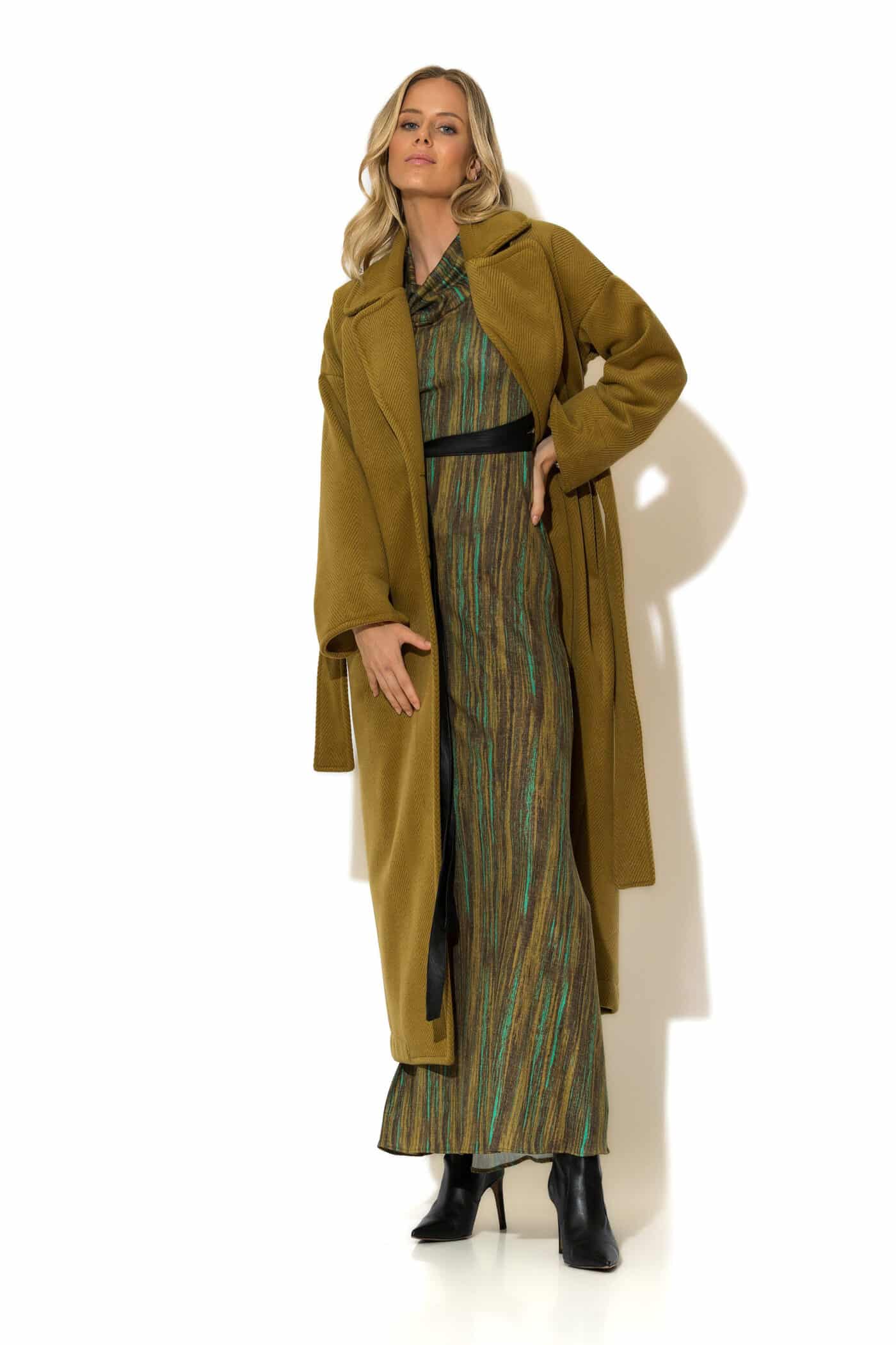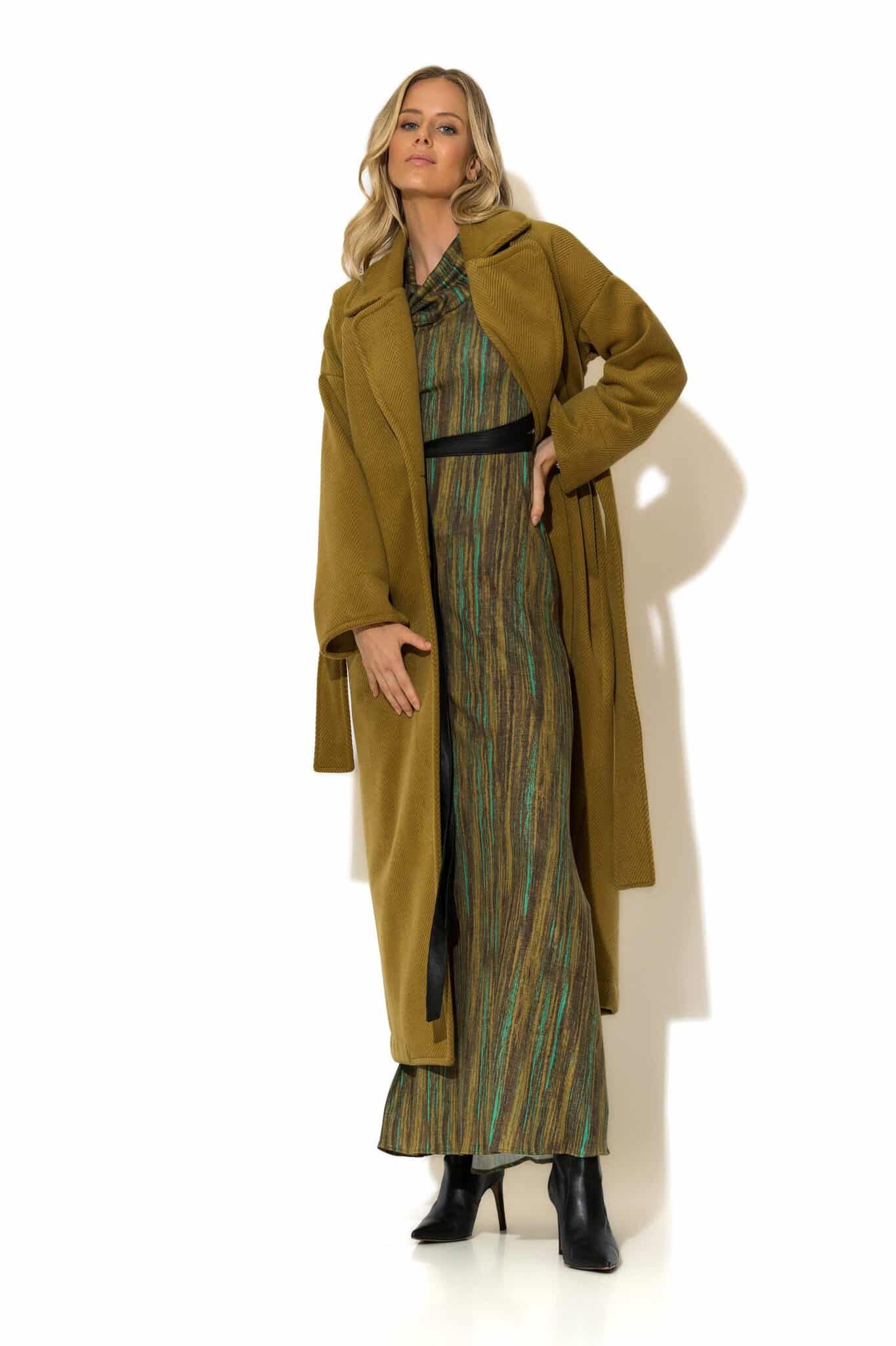 Long Velour Belted Coat is the must-have coat for this season. Layer it over everything from slip dresses to leather pants and it will keep you warm and in style.