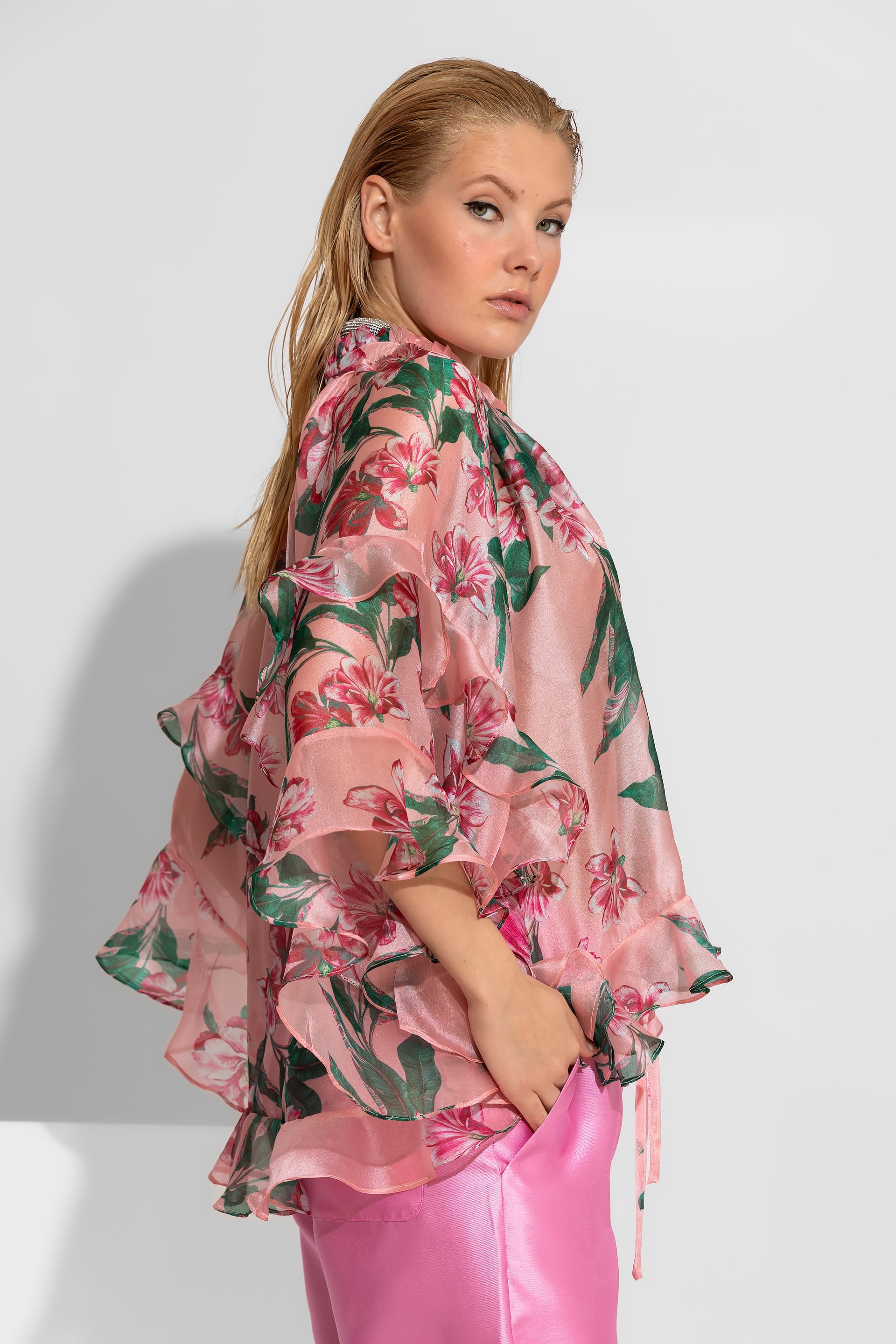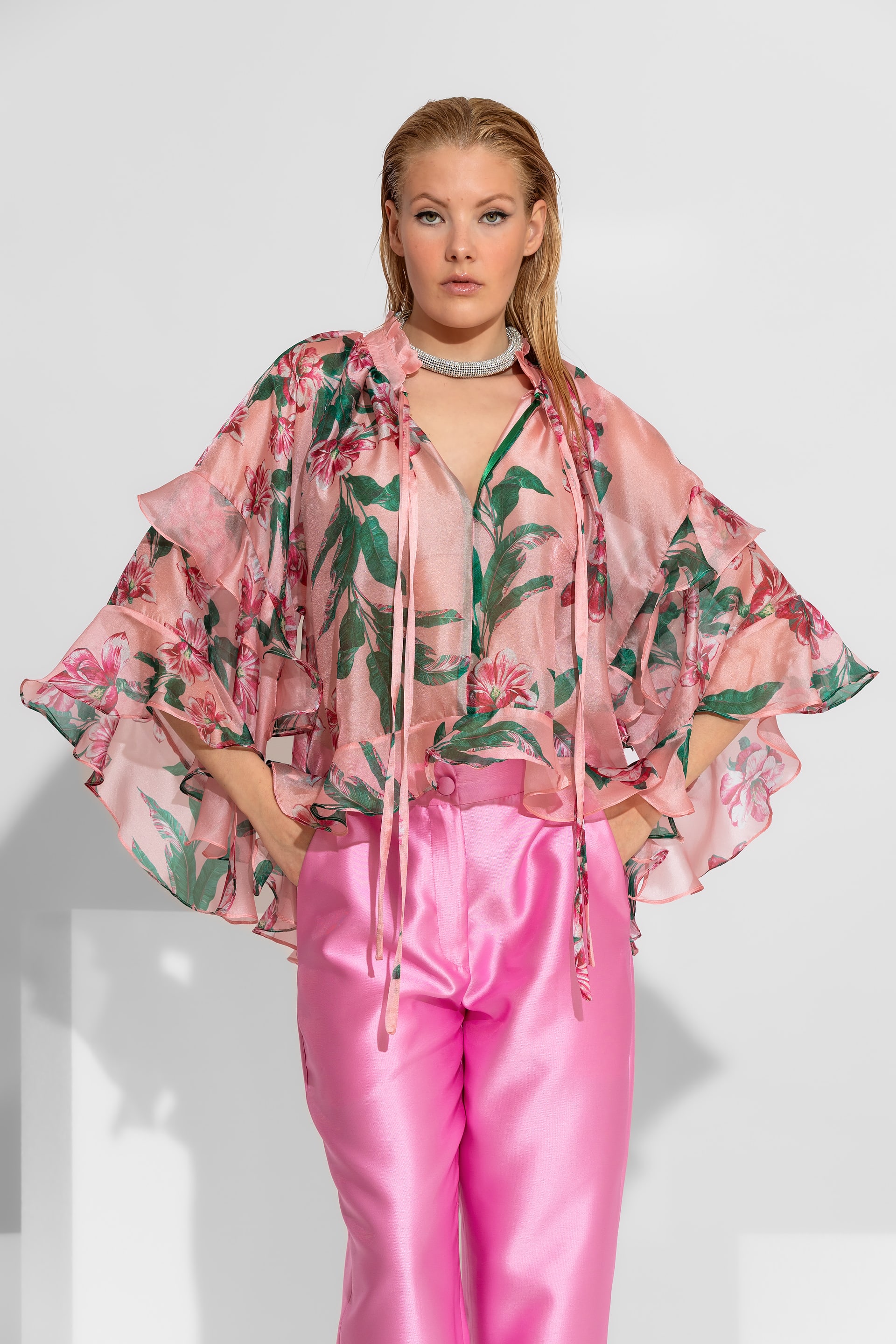 Αυτό το τέλειο πουκάμισο οργάντζα και τα ιδιαίτερα βολάν του κολακεύει κάθε σιλουέτα.