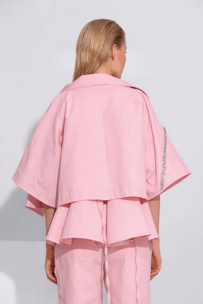 Pink Boxy Oversized Peplum Jacket with Crystal Trim
