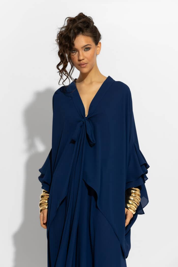 Voluminous Striped Ruffled Top with Removable Pearl Detail